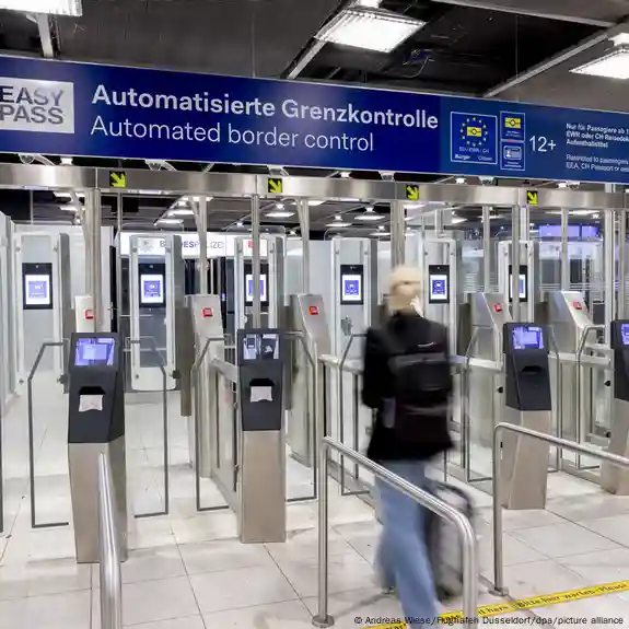 يهدف النظام الجديد إلى المساعدة في تعقب الأشخاص الذين يتجاوزون مدة إقامتهم المسموح بها، فضلا عن مكافحة التزوير في الهوية والحد من الهجرة غير النظامية.صورة من: Annette Riedl/dpa/picture alliance