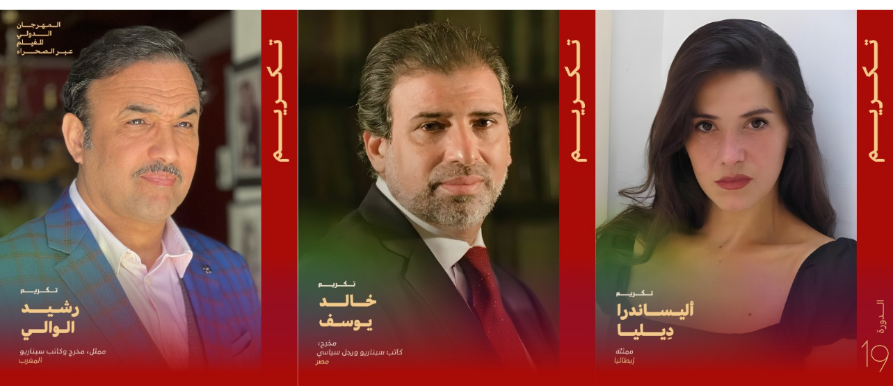 يكرم المهرجان الدولي للفيلم عبر الصحراء 19 ــ المقرر إقامته في الخامس من أكتوبر القادم بزاكورا المغربية ــ شخصياتٍ سينمائية وثقافية متنوعة، على رأسهم: الممثل/ المغربي رشيد الوالي بصفته مخرجاً ومنتجاً أيضاً، والمخرج المصري خالد يوسف، والممثلة الإيطالية أليساندرا ديليا.