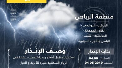 أصدرت هيئة الأرصاد وحماية البيئة عبر نظام الإنذار المبكر تنبيهات عدة، شملت منطقة المدينة المنورة ومكة المكرمة والرياض والباحة وعسير…